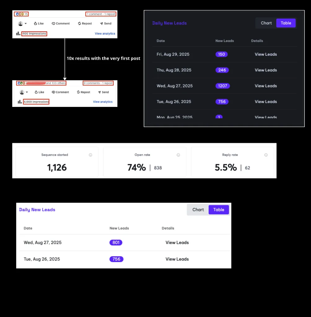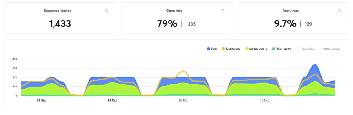€35,000 in deal volume within the first 30 days of the campaign. 9.7% reply rate across all cold emails.